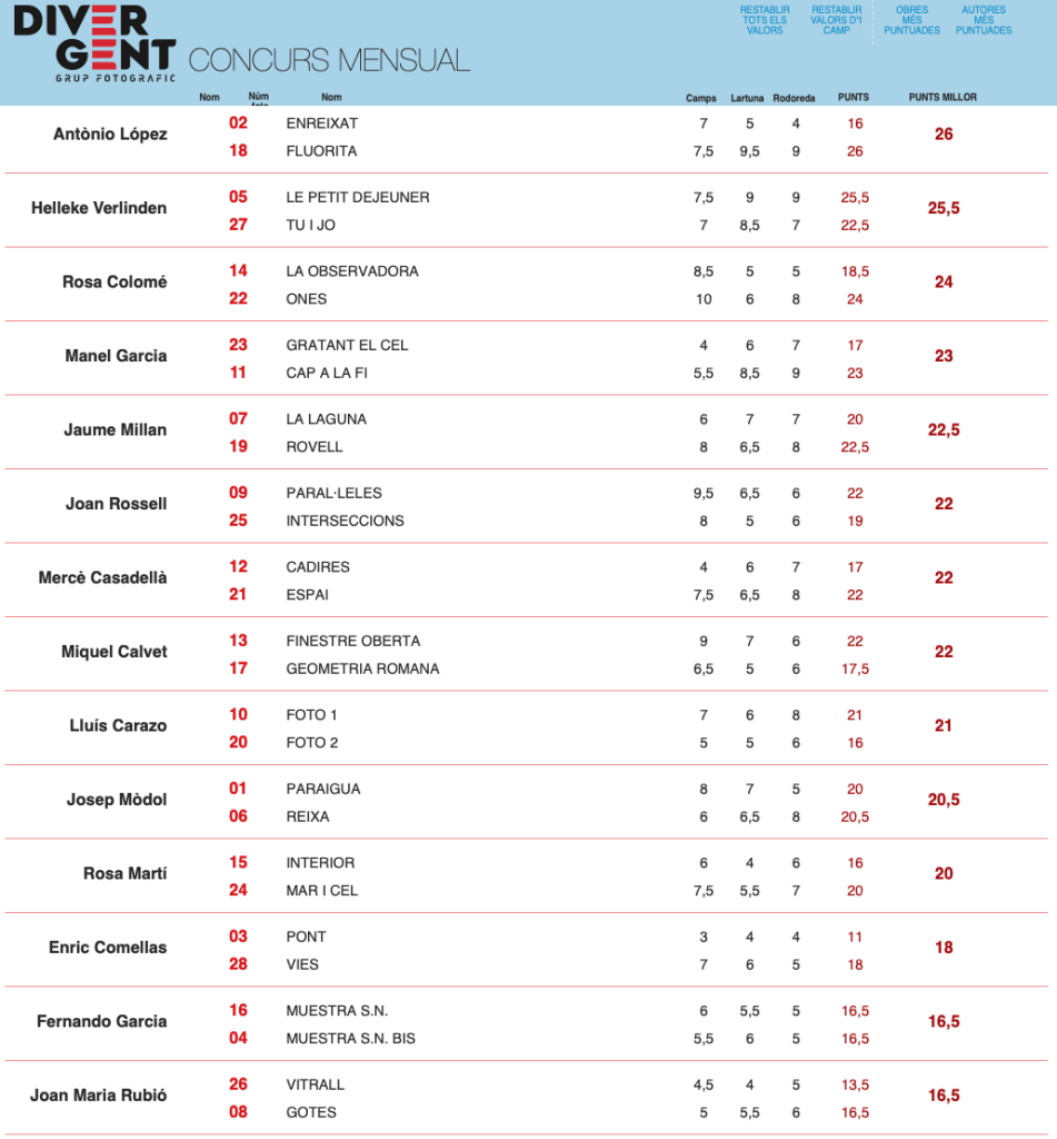 SEGON CLASSIFICAT 25,5 punts