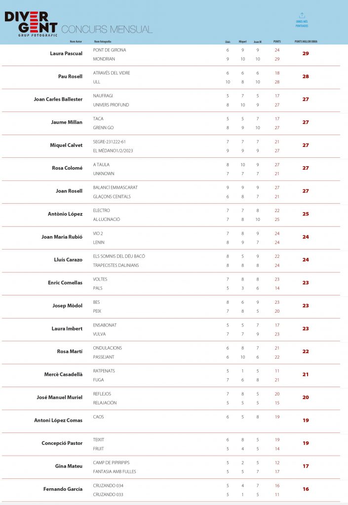 PRIMER CLASSIFICAT 29 punts