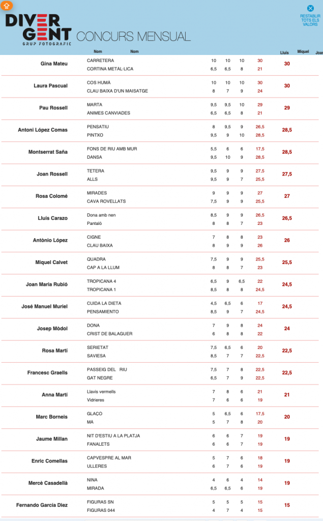PRIMER CLASSIFICAT 30 punts